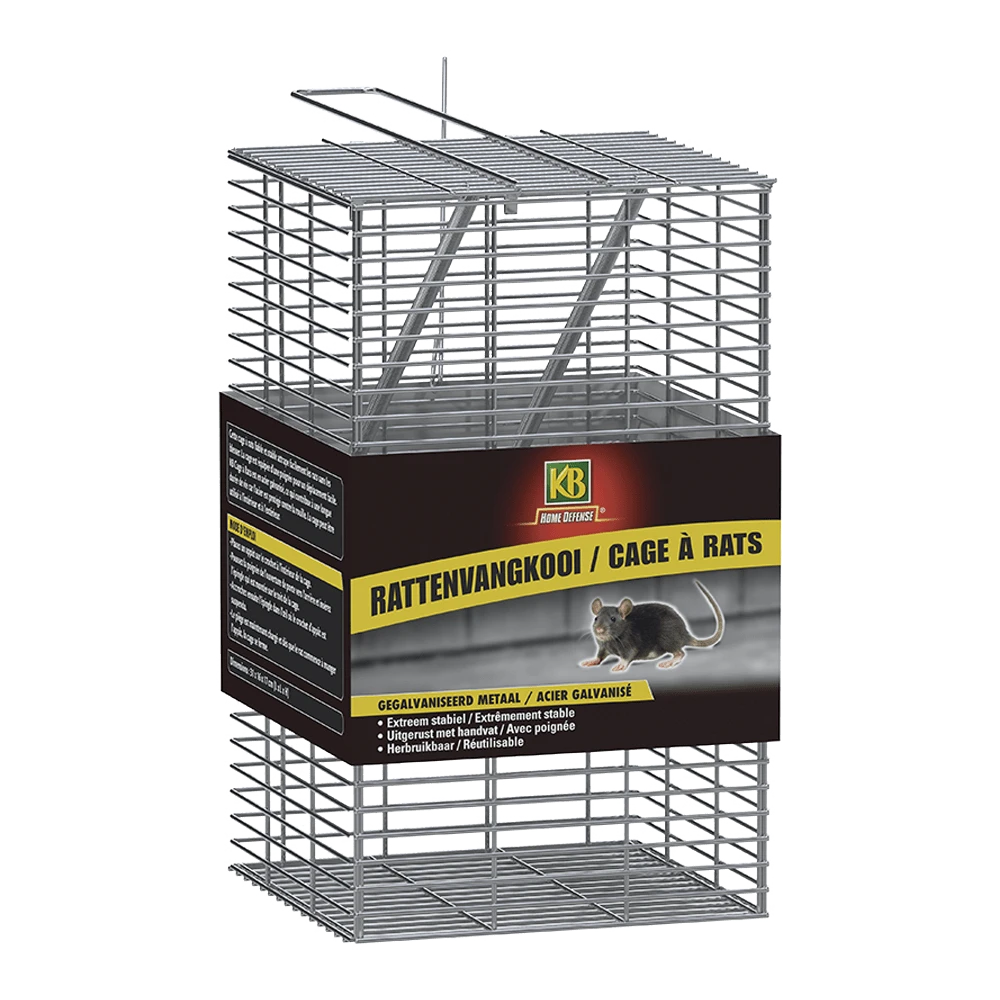 KB Rattenvangkooi is een betrouwbare en stabiele rattenvangkooi en vangt ongecompliceerd ratten zonder letsel toe te brengen. De rattenkooi is uitgerust met een handvat om hem gemakkelijk te kunnen verplaatsen. KB Rattenvangkooi is gemaakt van gegalvaniseerd staal, wat bijdraagt aan een lange levensduur omdat het staal beschermd wordt tegen roest. De kooi kan zowel binnen als buiten gebruikt worden.